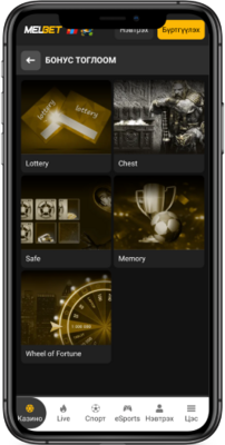 MelBet казино 197 үйлчилгээ үзүүлэгчдийн 8,000 гаруй тоглоомтой. Слотууд нь хамгийн алдартай боловч Монголын олон тоглогч ширээний тоглоом, лайв дилертэй тоглоом, шуурхай хожил, Aviator, Crash, Bingo, Keno, видео покер, Plinko зэрэг тусгай тоглоомуудыг нь илүү их сонирхдог. MelBet мөн өрсөлдөөн, их хэмжээний бэлэн мөнгө хожих дуртай хүмүүст зориулсан байнгын тэмцээн, сорилтуудыг явуулдаг.